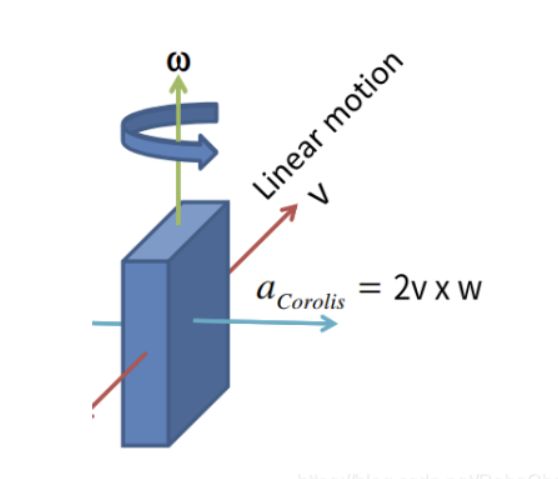 一个物体以固定的线速度v运动,同时受到一个角速度的影响,这时候在叉乘方向会有一个科氏力的作用,测量这个力便能知到角速度W的大小。